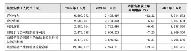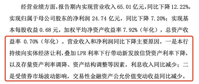 根据公告,今年上半年,贵阳银行实现营业收入为65.01亿元,同比下降12.22%;归母净利润为24.74亿元,同比下降7.2%。