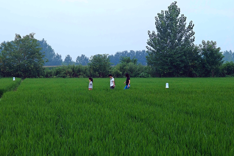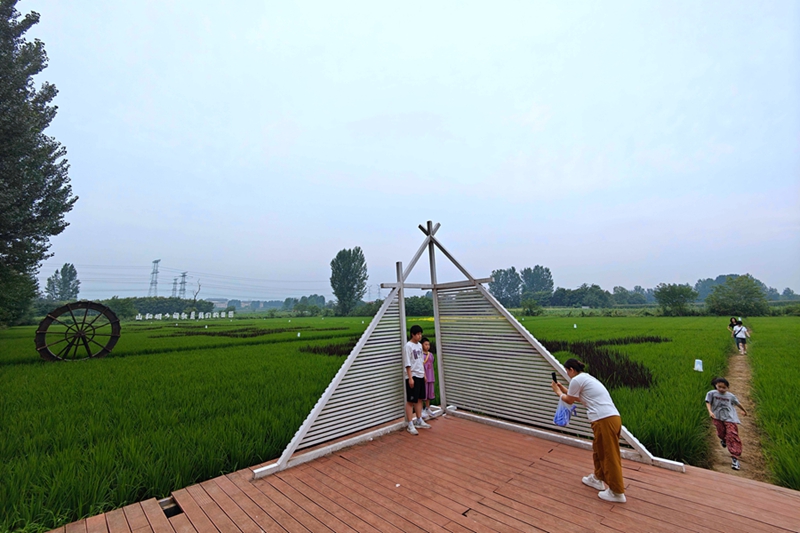 带着孙女来此休闲的张老先生夫妇说:“趁着暑假,带孩子接触一下大自然,观察水稻的生长情况。她此前参加了这里的插秧活动,我们每隔一段时间带她看看,因为孩子想知道自己插秧的稻田现在是什么情况。”